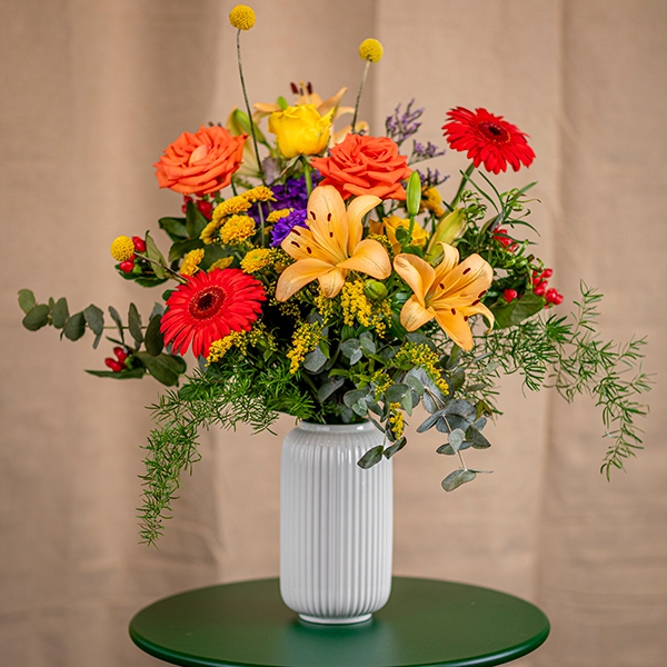 Zeg vaarwel tegen saaie momenten met Golden Hour, een boeket dat aanvoelt als pure zonneschijn! Met stralend gele lelies, oranje rozen en rode gerbera's geeft dit boeket een warme uitstraling aan elke ruimte of gelegenheid. Of je nu een speciaal moment viert of gewoon wat vrolijkheid wilt sturen, dit arrangement doet het in stijl. De bloemen worden in knop geleverd, zodat ze mooi zullen bloeien en elke dag een beetje specialer maken. Met bloemen die lang meegaan geef je bovendien een cadeau dat blijft stralen, waardoor het een mooie en slimme keuze is voor elk budget!